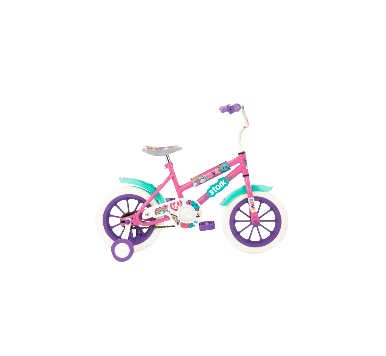 BICICLETA LOVE Rodado 12 Pinon fijo Cuadro acero Reforzado Cano Inferior 35 mm Pintura liquida sobra base esmalte Sistema de frenos STARK, Sistema de Freno Trasero Pinon Fijo, Material Nylon con carga Ruedas con llantas plasticas Medidas 12 * 3-4 ( Eva Tyre ) Bujes de PVC con Nylon