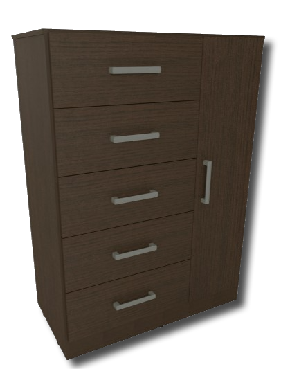CHIFONIERS LINEA NORDICA Ficha Técnica Cinco cajones, una puerta, correderas metálicas Color wengue