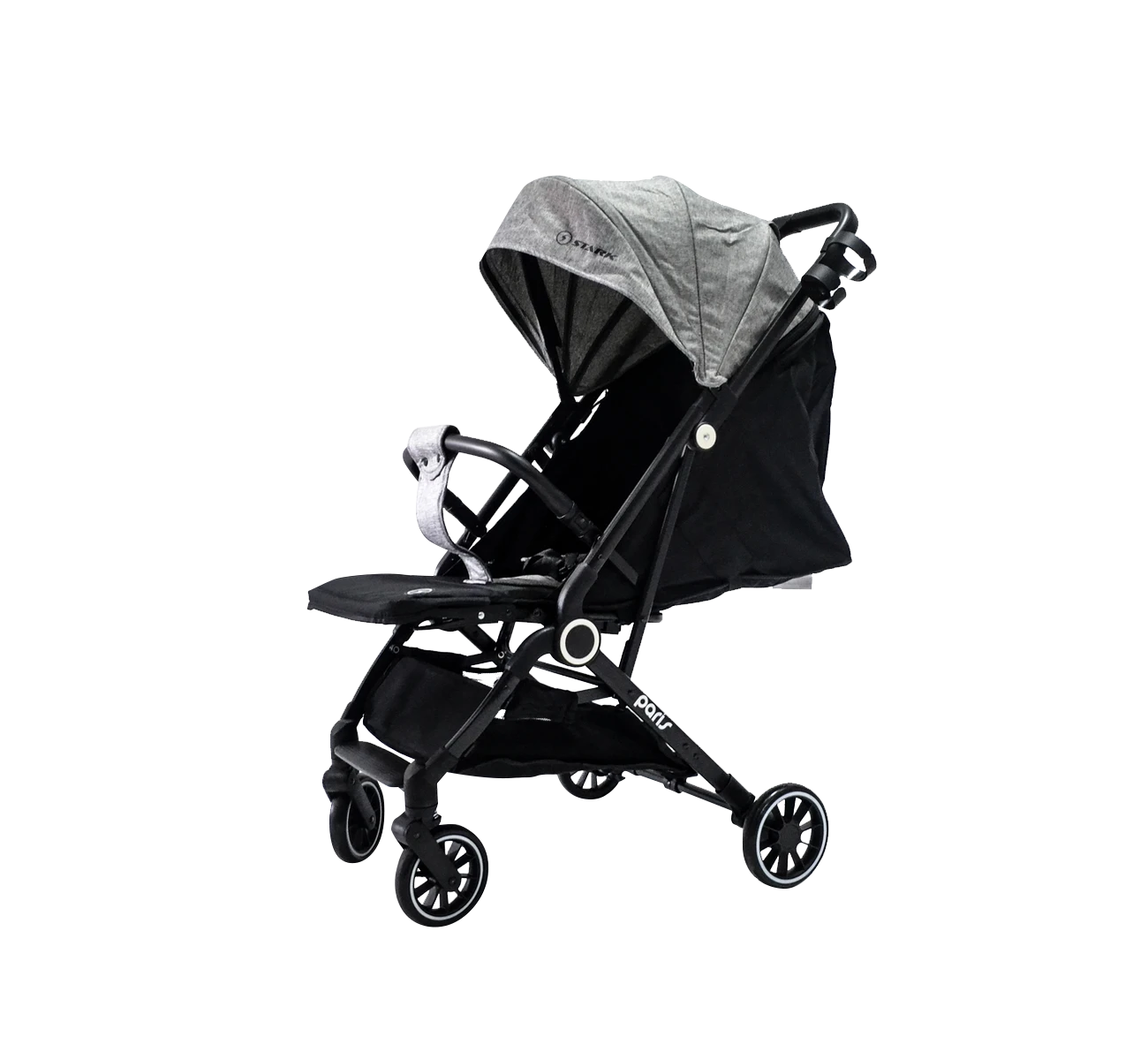 Manija desplegable Pliegue rápido Tapizado extraíble Porta bebidas Fácil transporte Capota móvil y reclinable Sistema de seguridad cinturón quíntuple Cinturón de seguridad Ruedas con amortiguación Canasto porta objetos Ventilación y visor por red Chasis de Aluminio, ultra liviano Rueda Delantera 12,5cm Rueda Trasera 16cm