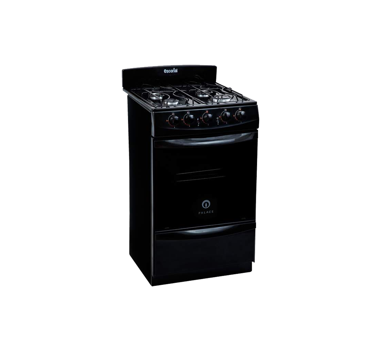 PALACE CRISTAL BLACK Color: Negro Medidas: 95cm (Al) x 51cm (An) x 60cm (Pr) Encendido electronico – Luz en Horno. Sistema: Gas Natural y Gas Licuado. Peso: 26,5 kg. Superficies exteriores e interior del horno totalmente enlozados en polvo electrostatico de facil limpieza. Puerta de horno de vidrio. Doble rejilla desmontable en plancha. 4 hornallas (3 medianas y una grande). Valvula de seguridad en hornallas y horno. Quemadores de aluminio pulidos con tapa de acero esmaltada. Respaldo extraible. Puerta de horno con bisagra desmontable. Cajon parrilla con puerta rebatible. Asadera. Eficiencia energetica: Clase A.