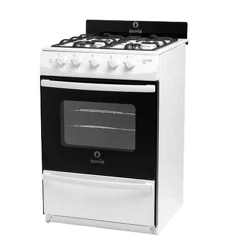 MASTER STYLE Color: Blanco Medidas: 93cm (Al) x 56cm (An) x 60cm (Pr) Encendido de una mano- Reja de fundición. Blanca con laterales del mismo color y tapa de horno de vidrio negro. Encendido de una Mano y Luz en Horno. Reja de fundición. Nuevo y renovado diseño. Respaldo de vidrio. Sistema Multigas (gas natural convertible a gas licuado). Peso: 35 kg. Puerta horno con doble Vidrio. Doble reja de horno cromada. Superficie interior del horno totalmente enlozado en polvo electrostático de fácil limpieza. Doble rejilla desmontable en plancha. 4 hornallas (3 medianas y una grande). Válvula de seguridad en hornallas y horno. Quemadores de aluminio pulidos con tapa de acero esmaltada. Manija de horno y parrilla en acero pintado. Puerta de horno con bisagra desmontable. Cajón parrilla con puerta rebatible. Asadera. Eficiencia energética: Clase A. https:–escorial.com.ar-producto-175-master-style