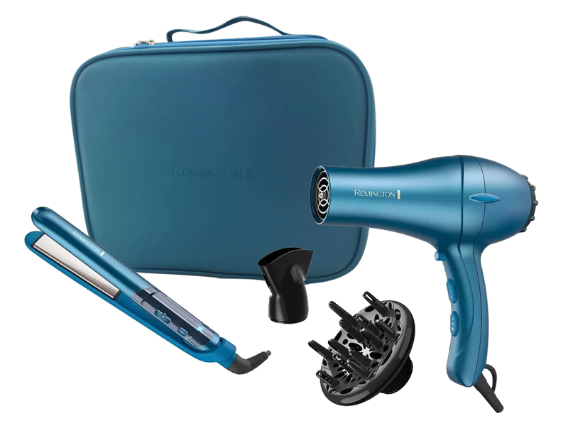 PLANCHA ALISADORA REMINGTON SILK + SECADOR REMINGTON OCEAN SILK Plancha: Medida de las placas: 2,54cm – 1 30 Ajustes de Temperatura Temperatura máxima: 220°C (455°F) Calentamiento en 15 segundos Botón de Encendido y Apagado Placas Recubiertas de Cerámica infundida con seda Bloqueo de placas Apagado Automático Placas flotantes Cable Giratorio de 1,8 metros Secador: Motor DC 1875W Rejilla frontal recubierta de titanio + cerámica 3 ajustes de temperatura 2 ajustes de velocidad Filtro removible Ráfaga de aire frío Pintura suave al tacto Concentrador y difusor