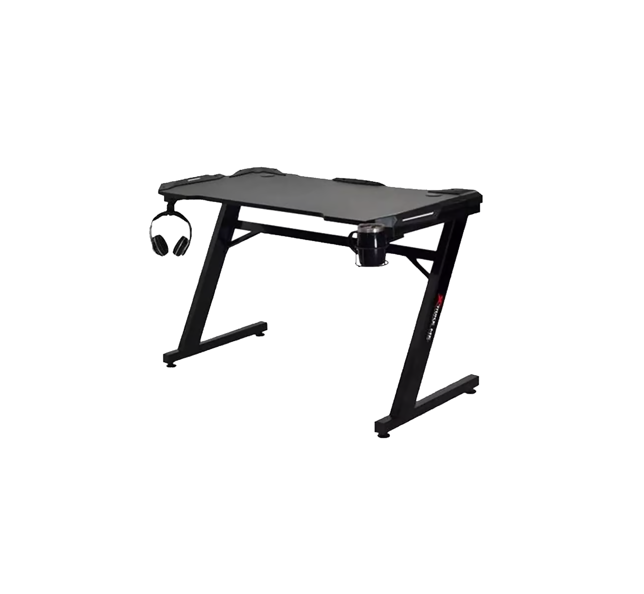 ESCRITORIO GAMING BLACK DK-O2BK X TRIKE Material: fibra de carbono Dimensiones: Largo 110cm – Ancho 60cm – Alto 74cm Ancho del borde 15mm Patas hierro Porta vaso Reposa auriculares