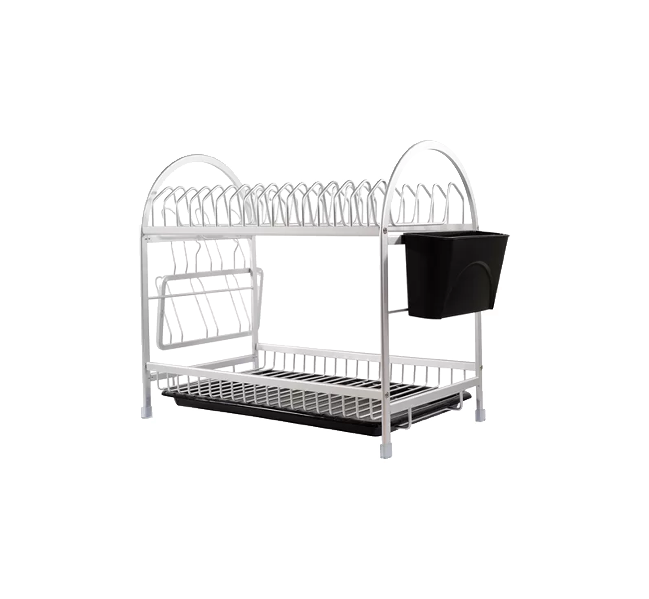 ESCURRIDOR DE PLATOS ALUMINIO SUPER 2 NIVELES – 16384 Confeccionado en aluminio. Es desarmable. Excelente terminacion y calidad. Medidas totales: Largo 51 cm | Prof. 25 cm | Alto 37,5 cm Altura entre pisos: 22 cm Largo sin accesorios: 40 cm Capacidad: 15 platos | 12 vasos Apto para platos cuadrados Bandeja plastica extraible color negro : Largo 37,5 | Ancho 24 cm | Altura 2 cm Escurre cubiertos plastico extraible color negro NO SE OXIDA SE ENTREGA EN CAJA DESARMADO
