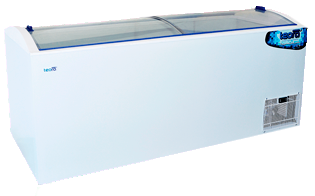 EXHIBIDORA HORIZONTAL 900 LTS TAPA VIDRIO CURVO TEORA