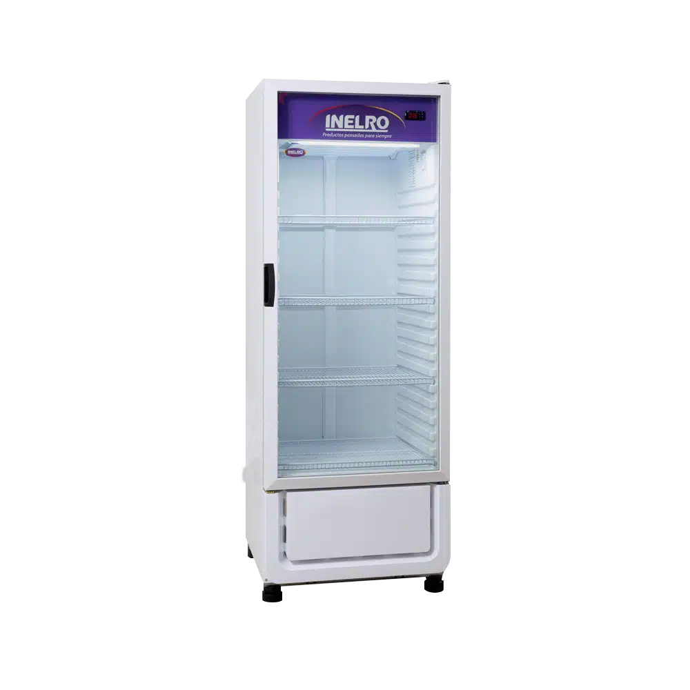 Exhibidora Vertical – Sin Cenefa, Condensación Estática, Cuatros Estantes Móviles, Tolva Inyectada, Nuevo Zócalo Inyectado. Capacidad: 390 lts Controlador Digital de Temperatura = Menor Consumo Mayor Aislación = Menor Consumo Mejor Desempeño Frigorífico Resorte en puerta, garantiza el cierre = Menor Consumo