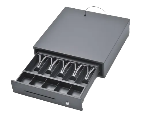 Apertura electrónica para trabajar en sincronismo con registradoras y controladores fiscales. 5 divisiones para billetes y monedas. Compartimiento posterior de uso múltiple. Apertura y cierre manual ó por impulso eléctrico.