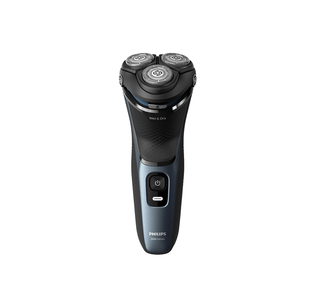 Shaver 3000 Series – Afeitadora electrica para uso en seco y humedo S3144-00 Cabezales Pivot y Flex 5D Cuchillas PowerCut Afeitada en seco o humedo Sistema de afeitado anticorrosion Tapa protectora Recortador desplegable incluido Tiempo de funcionamiento: 60 minutos-20 afeitadas Tipo de bateria: Ion de litio Carga rapida (5 min) Tiempo de carga: 1 horas de carga completa