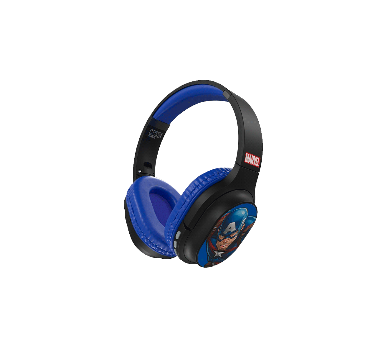 Audifonos inalámbricos con micrófono | Edición Capitán América XTH-M660CA Conectividad: Inalámbrica Factor de forma: Supraaural Color: Negro con azul Audífonos estéreo con micrófono y tecnología inalámbrica Transmite audio inalámbricamente desde un teléfono inteligente, tableta o computadora Batería recargable integrada proporciona hasta 8 horas de reproducción Micrófono integrado para conversar con familiares y amigos Diadema ajustable y almohadillas acolchadas para máxima comodidad Entrada auxiliar para conectar los audífonos a un dispositivo y continuar escuchando música Microparlantes de 40mm brindan sonido detallado y natural desde varias fuentes de audio Controles integrados para encendido, apagado, música y gestión de llamadas Las cápsulas se giran 90 grados para fácil portabilidad Diseño plegable para un transporte práctico