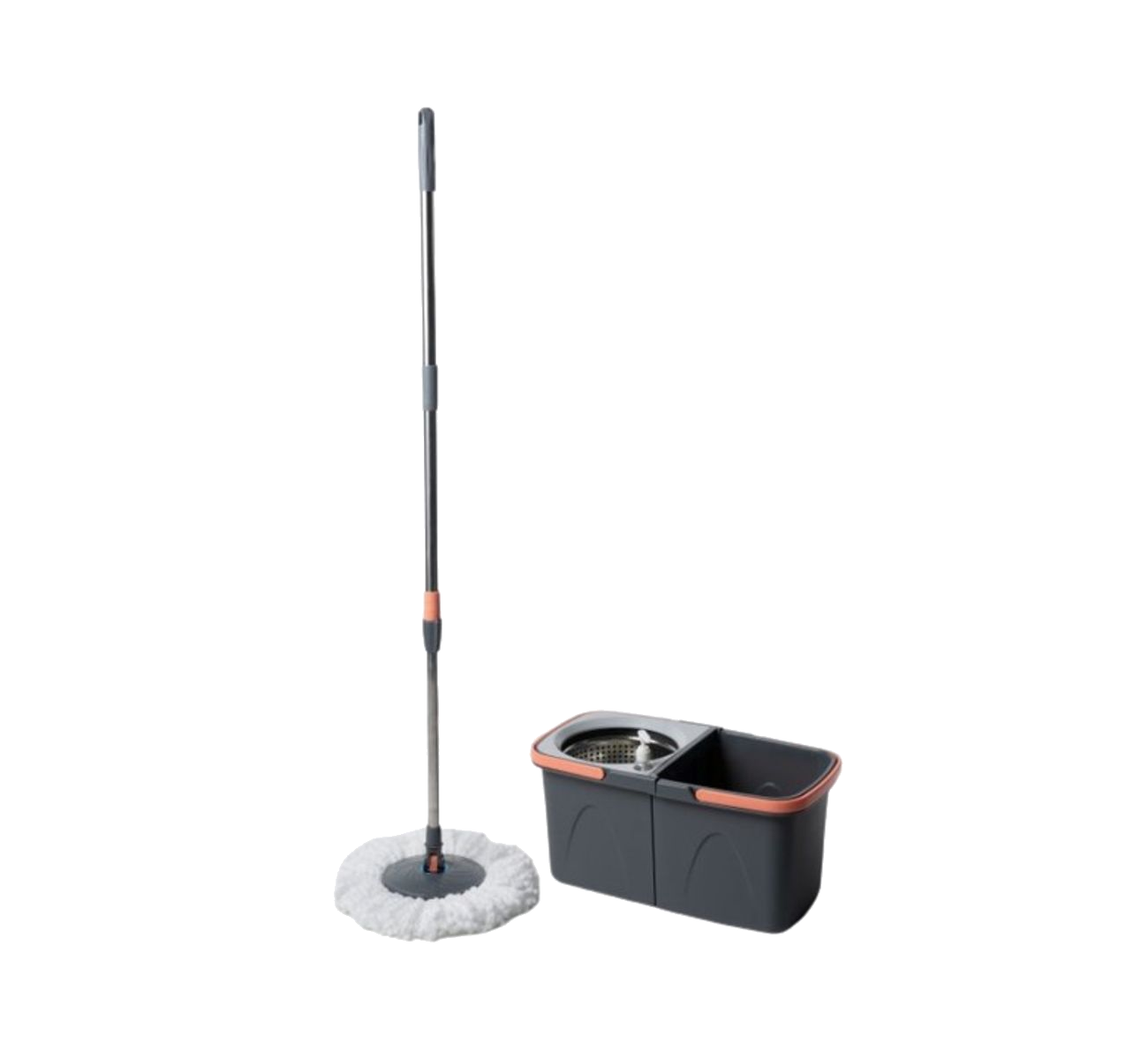 Set de limpieza: Mopa centrifuga y balde escurridor OB-LBT2 Mopa de accionamiento manual sin necesidad de electricidad, con aplicador de detergente integrado y traba giratoria de mecanismo centrifugo.