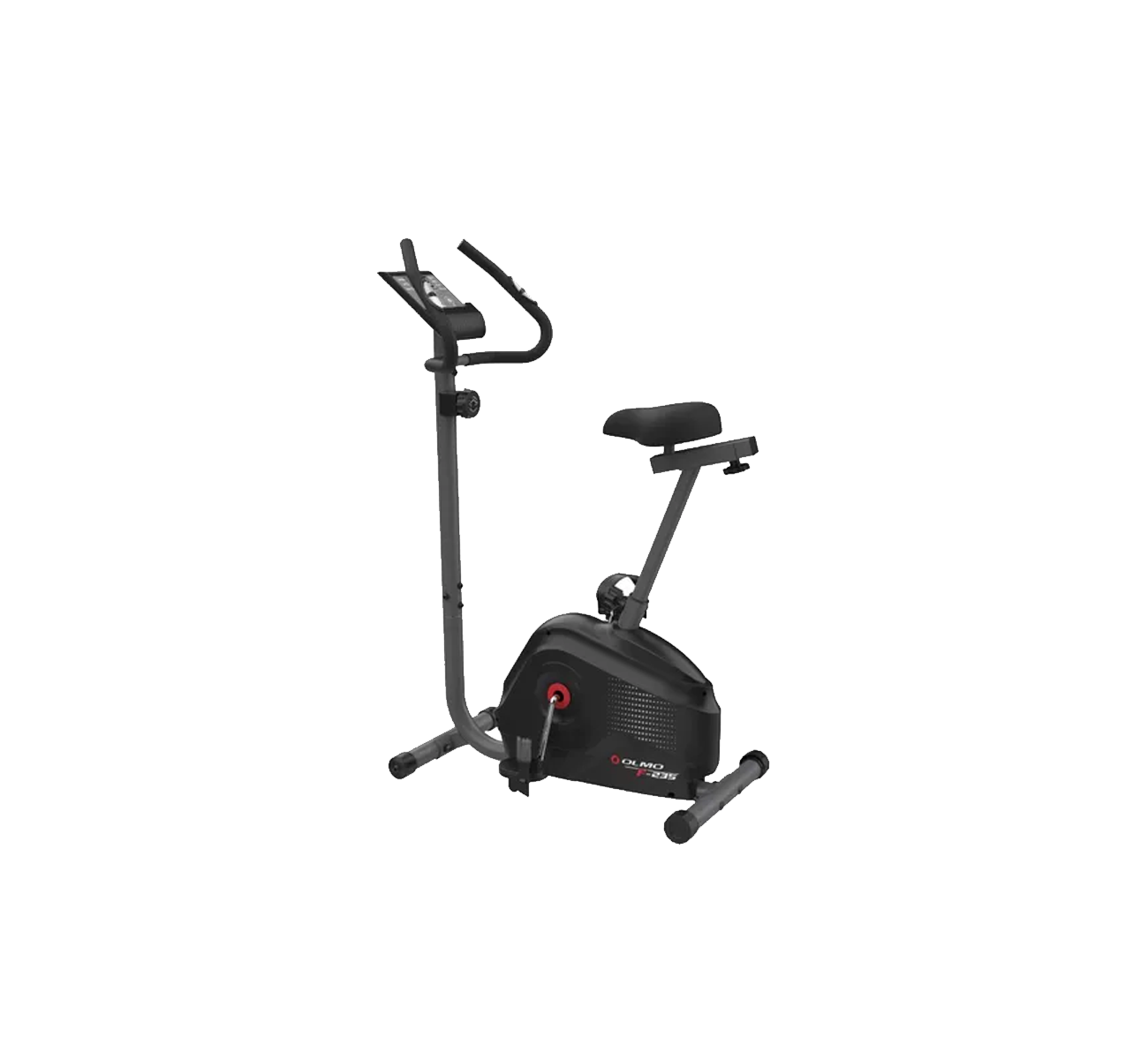 Bicicleta magnetica Fit 235 Volante inercial de 4 kg. Diseno de cuadro con paso bajo, ideal para personas con limitaciones de movilidad. Manillar con sensores de pulso cardiaco. Regatones traseros para estabilidad del equipo y ruedas para facil traslado. Regulador manual magnetico con 8 niveles de esfuerzo. Asiento regulable horizontal y verticalmente. Monitor electronico (velocidad – distancia – tiempo – calorias – pulso – scan) con soporte para tablet o celular. Utiliza 2 pilas AAA, no incluidas. Pedales con traba de seguridad. Peso maximo admitido 110 kg. Medidas del equipo 104 x 48 x 134 cm. Peso del equipo 21,5 kg.