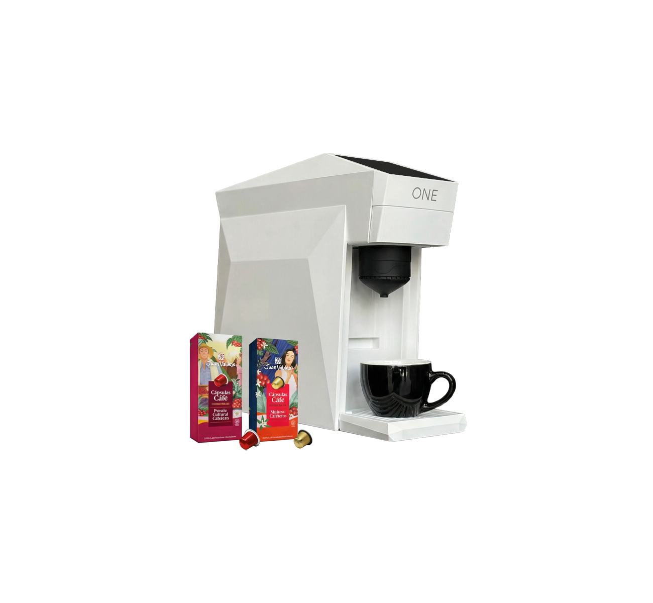 Cafetera 4 en 1 ONE COFFEE Incluye capsulas Juan Valdez x8 de regalo Compatible con capsulas Dolce Gusto, Nespresso, cafe molido y K-Cup. Metodo Semiautomatico: Facilita la elaboracion de cafe a tu gusto. Capacidad Maxima de Agua: 800 ml, ideal para preparar varias tazas. Materiales de Alta Calidad: Fabricada en ABS, acero inoxidable, silicona, acrilico y PA6, asegurando durabilidad y resistencia. Preparacion Rapida Control Inteligente de Temperatura NTC: Ajusta la temperatura entre 70 y 95 °C Cuatro Tamanos de Taza: Personaliza la cantidad de cafe que deseas. Apagado Automatico: Mayor seguridad y ahorro de energia.