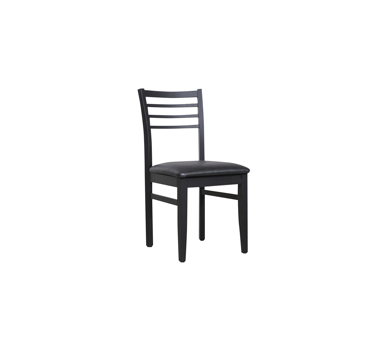 Silla Clasica Madera maciza de Pino de alta calidad. Lustres (PU) color Negro Tapizado (Eco Cuero) color Negro Asiento de espuma con densidad de 22 Kg -m3 con espigado interno. Respaldo ergonomico. Medidas (ancho x alto x prof.) 0,46 x 0,46 x 0,91 m.