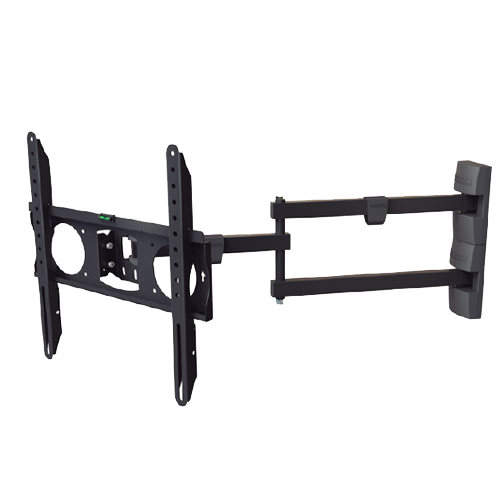Distancia a pared: 9 a 70cm Nivel de burbuja + kit de fijación Ajuste de Nivelación Traba de Seguridad Inclinación: 25 grados Rotación: 180 grados Resiste: 55kg Universal y VESA: 50×50 a 400×400